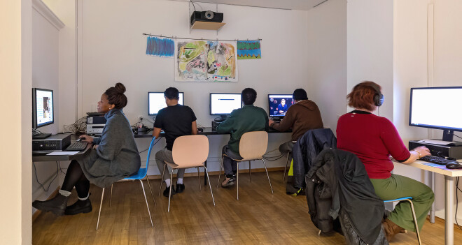 Et voilà Isabelle, qui se décrit comme imperméable à l’informatique. Sa zone de confort numérique s’arrête à son radio-réveil. L’écran sur la table est, à ses yeux, « un monstre ». Cela tient peut-être davantage à la honte qu’à des racines différentes, mais on perçoit, là encore, des relents d’exclusion sociale. Ici, aucune question n’est posée sur les origines ou sur les discriminations : « tout le monde doit vraiment se sentir bienvenu », souligne l’équipe. La plupart des participantes et participants ont subi du harcèlement de la part des autorités. Il est d’autant plus important de créer des espaces « agréables » : sur la 13ᵉ planète, l’essentiel consiste à apprendre, à travailler, mais aussi à rire.